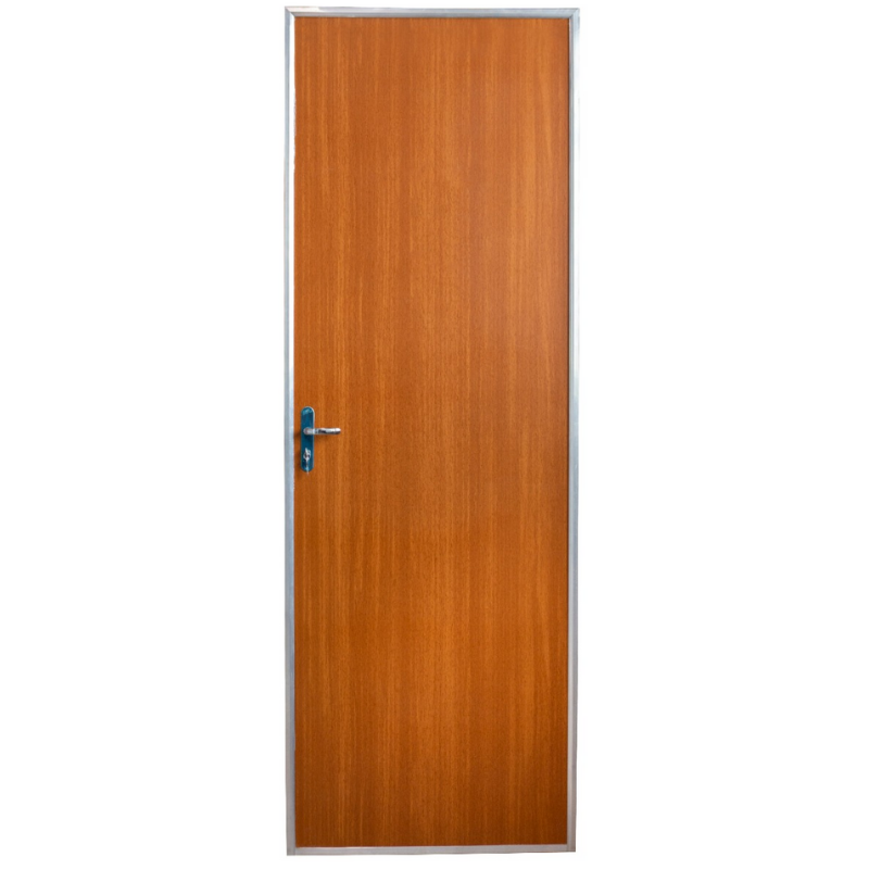 PORTA DE MADEIRA COM MARCO DE ALUMINIO NATURAL COR MOGNO PRONTA PARA INSTALAÇÃO COM FECHADURA E MAÇANETAS INCLUSAS